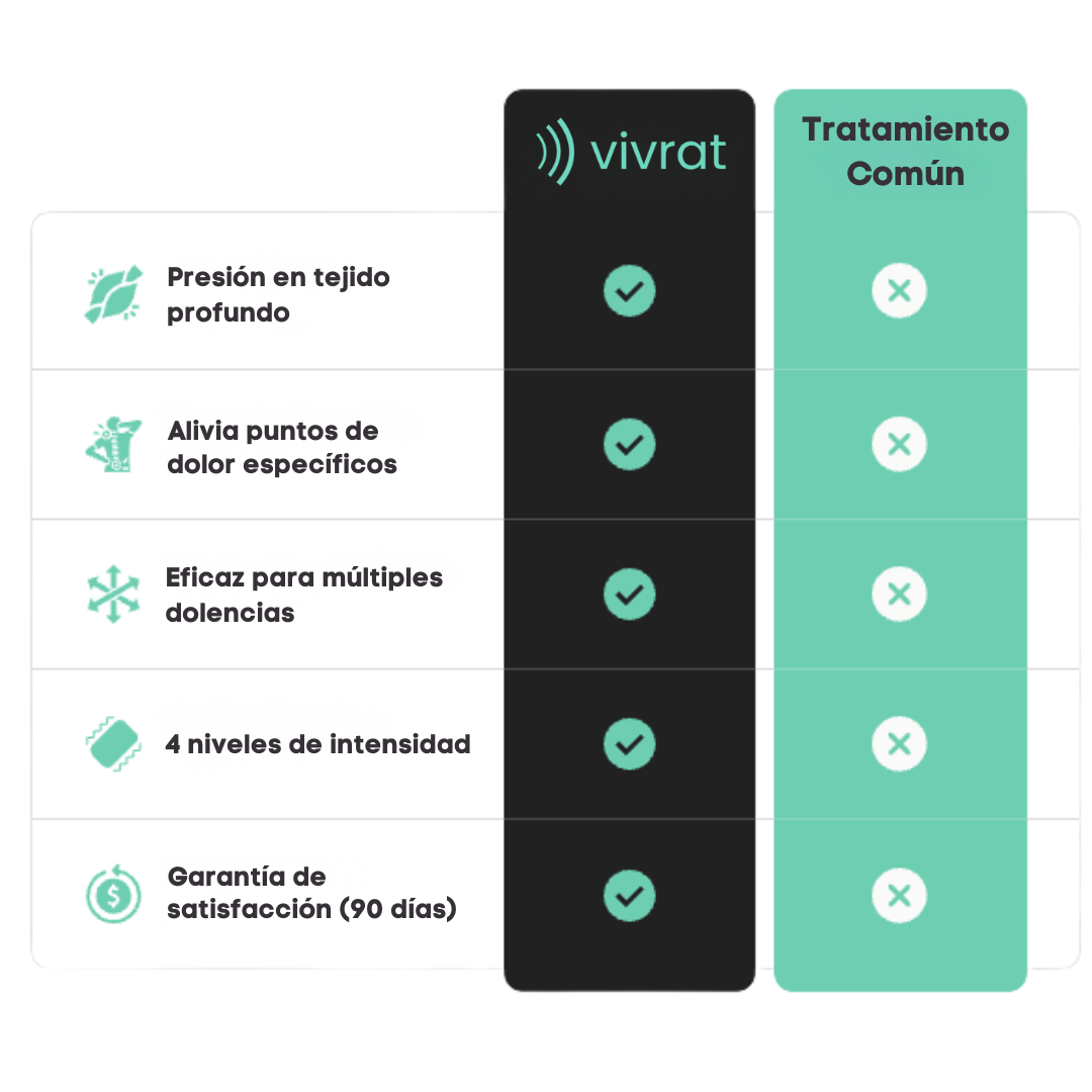 Tras un entrenamiento intenso o un turno largo, los músculos se quedan rígidos. El VIVRAT ayuda a relajarlos combinando presión y vibración, logrando un alivio mucho más rápido que los masajes manuales.